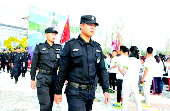 ◥济宁高新区特警维持现场秩序。本报记者 张晓科 摄