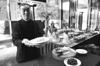 衍圣公府菜品制作展示。本报记者 姬生辉 摄