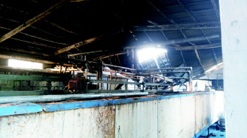记者看到,港晟劳保厂区分为办公区和生产区,而着火的挂胶手套车间就位于靠近马路的生产区内,同时与办公区的一座办公楼紧邻着。记者走进厂子的生产区,数十米长的厂房过火后变得一片狼藉。生产车间外面到处是一些燃烧过的生产材料,而厂房也被熏黑。走进起火的车间时,记者闻到了一股刺鼻地气味,而厂房里面更是被烧得面目全非,大量的机械设备被烧毁,而且顶棚也被烧塌陷了一部分,甚至紧邻的办公大楼也被大火熏黑。