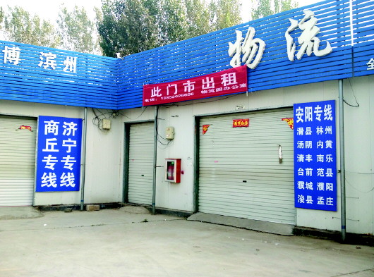 如今顺达物流公司的门市只剩下“物流”二字,并正对外出租。