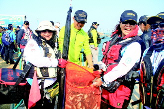 本报10月18日(记者 陈乃彰) 10月17日—10月18日,在西霞口休闲垂钓基地,2015“西霞口”杯全国休闲海钓暨中韩友谊邀请赛顺利举行。来自河北、浙江、青岛等省市及韩国、澳门各国地区30支队伍,90名海钓运动员齐聚荣成参与活动。