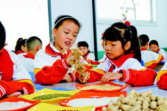 近日,文登大众小学开展“爱粮惜粮”主题教育活动。活动中,老师讲解了世界粮食日的来历和全球粮食危机的现状,并教给学生区别大米、小米、高粱等粮食作物,教育学生爱惜每一粒粮食。