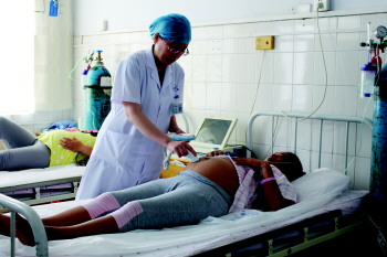 刘锦秋正在为产妇接诊。