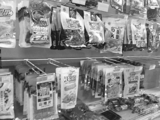 目前,各大商超内售卖的食品类商品依然以QS标志为主。 本报记者 王开元 摄