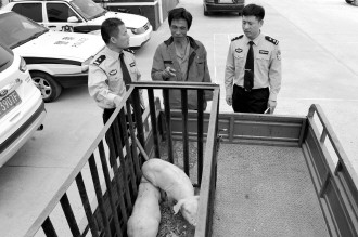 17日,山亭北庄户龙山村村民陶传付领到了山亭警方为他追回的失盗猪崽。据悉,被打掉的犯罪团伙专门盗窃农户猪崽,自今年9月份以来,先后流窜作案40余起,盗得猪崽120余头,涉案总价值40000余元。 本报通讯员 张雷 本报记者 袁鹏 摄影报道