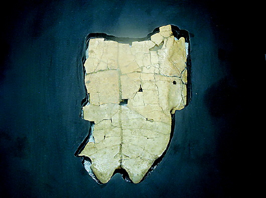 当然,出土文物中最珍贵的就是甲骨文了。它们的“老家”位于大辛庄遗址的东南部,共出土有字卜甲8片,其中4片可拼合成有25字的一版,由兆辞、兆数和前辞组成。据专家初步认定,其内容是对某位“母”进行祭祀的占卜记录,不论甲骨修整、钻凿形态还是字形、文法,都应与安阳殷墟卜辞属同一系统。根据出土层位、文字特征和其他资料综合分析,大辛庄甲骨文的年代应不晚于殷墟文化三期,距今约3200年。