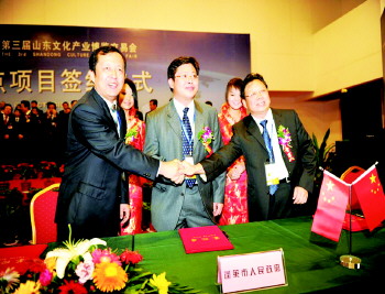 2010年9月,济南大学校长程新、蓬莱市市长孙业宝、山东大众文化产业投资公司董事长韩曰明签署办学协议。