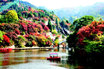 现在济南红叶谷已经进入观赏红叶的最佳时期,山风轻拂,红叶婆娑,层林尽染,美不胜收!浅红、深红、紫红……让人眼花缭乱,目不暇接,拾阶而上,曲径通幽,置身其中,仿佛进入仙境。抬头望,红叶如霞万山红遍;低头看,红叶铺满青石小路;瀑布旁,水珠激溅的红叶娇羞妩媚。被风霜打过的红叶,映红了瀑布,映红了岩石,映红了峰峦起伏的层层青山。观看红叶的最佳位置有观景台、绚秋湖、情人谷以及万叶塔等等。特别是登上万叶塔,满山的红叶尽收眼底,你会惊叹大自然的“似烧非因火,如花不待春”的美丽。样如诗如画。