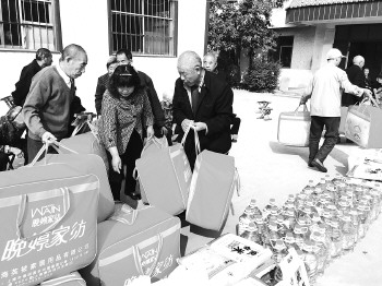 南张镇敬老院的老人领到慰问品。 本报记者 贾凌煜 摄