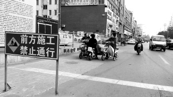 皇营路北段已设立起安全警示牌。本报记者 公素云 摄
