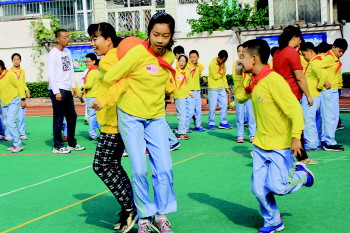 20日,韩国仁川新政小学的50多位小学生来到青岛,和文登路小学学生一对一结成对子。他们不仅一起上英语、烘焙等课程,还进行了趣味体育项目竞赛。晚上,韩国学生还将跟随中国学生回家,做家庭交流活动。