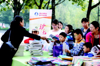 17日,胶州市在三里河公园南岸广场举行“图书大集”活动,一上午共出售图书300余本,赠送1000余册。据了解,“图书大集”已举办七次,将近万本图书送到市民手中。
