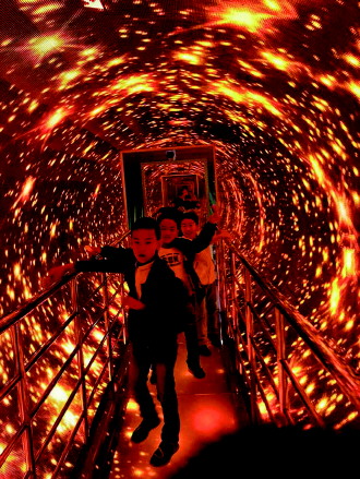 18日9时许,齐鲁晚报50名小记者乘坐大巴车来到威海科技馆,一组组形态各异的高科技展品吸引了小记者们的注意,兴奋不已的来回穿梭,仔细研究。在讲解员的介绍下,小记者们兴致勃勃地参观了科技馆中的基础科学、科技乐园、生态生命和蓝色家园4大展区。时空隧道、哈哈镜、星空称重、LED数字星球、虚拟水流墙……新奇有趣的展项让孩子们跃跃欲试,他们迫不及待地想动手操作,亲自体会其中的科学奥妙。