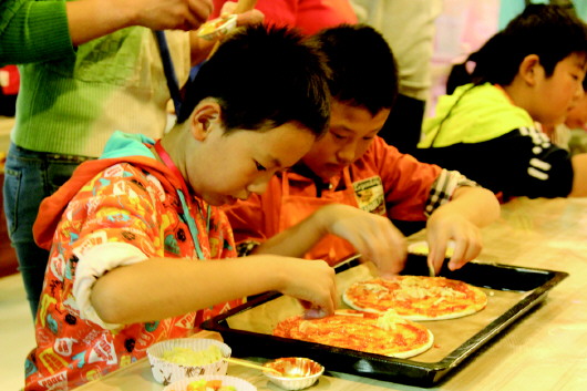 本报10月20日讯(记者 张爽) 17日上午,小记者们终于迎来了期待已久的披萨课堂,在幸福街洋果子烘焙房里小记者们变身“大厨师”展示着各自的厨艺,披萨香气充满着房间,大家早已迫不及待想要品尝胜利果实。