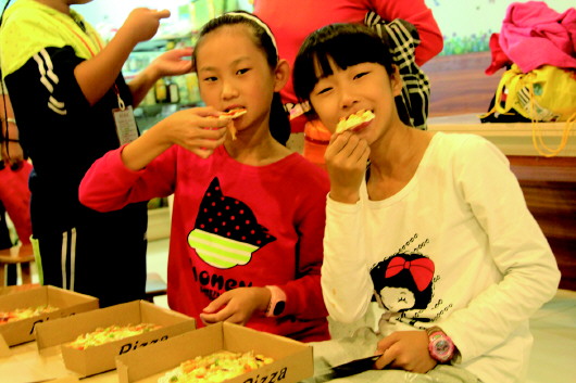 ▲小记者们正在制作披萨。