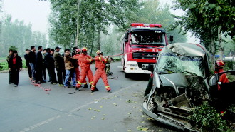 10月19日,滨湖镇七所楼村加油站南发生一起车祸,有一人被困。滕州消防大队经过询问,车主是外地人,行驶至该路段时为躲避车辆,撞到路旁沟边的树上。导致车辆前部严重变形,驾驶员被牢牢卡在车内。经过官兵们15分钟努力,被困人员成功被救出,并被送往医院进行救治。 本报通讯员 李谦 本报记者 甘倩茹 摄影报道