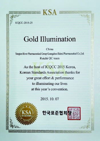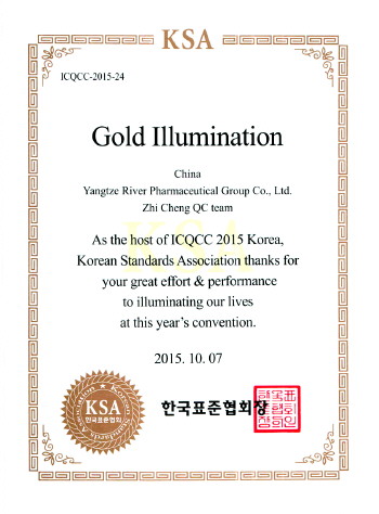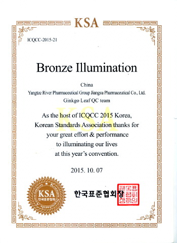 扬子江药业在第四十届国际QC大赛上撷取的奖项