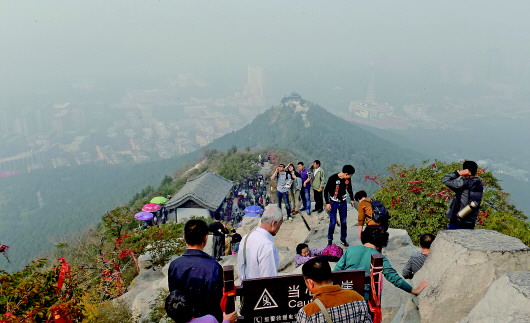 21日是重阳节,众多市民纷纷登上千佛山顶望远祈福,但由于雾霾太大,远处景色根本无法看清,不禁让人心生遗憾。 本报记者 周青先 摄