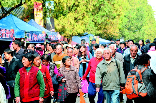 重阳佳节,很多老年人通过登高祈福、赶山会的形式来度过自己的节日。 本报记者 唐园园 摄