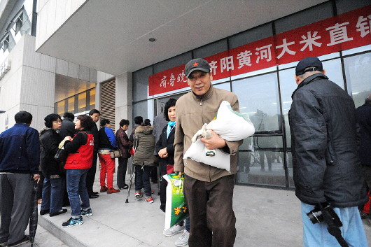 爱心黄河大米销售现场十分火爆。(资料片) 本报记者 张中 摄
