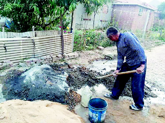 张坊乡的张大爷平时帮村里人盖房子,重阳节对他来说,没有特别的意义。  本报记者 邢敏 摄