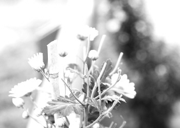 被掐掉花朵的菊花。