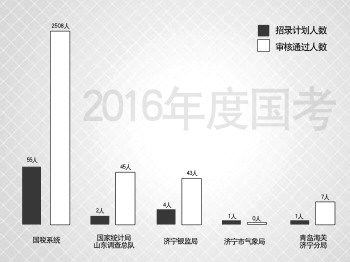涉及济宁职位中,国税系统提供了34个职位,招录55人,依然是国考招录人数最多的部门;国家统计局山东调查总队2个职位,招录2人;济宁银监局2个职位,招录4人;山东济宁市气象局1个职位,招录1人;青岛海关济宁分局1个职位,招录1人。