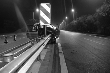 车祸现场,防护栏插进了车内。