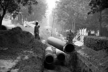 10月21日,天衢东路上凯元热电高温水供热管网改造施工正在紧张的进行中,计划11月5日前完成施工,保障正常供暖。 本报记者 马志勇 摄
