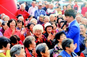 21日,在环翠楼广场,环翠楼街道办联合爱心企业邀请了专业歌舞戏曲演员,为社区老人献上了精彩演出,共庆重阳节。