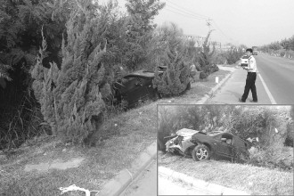 本报10月21日讯(记者 王震) 10月21日,202省道北七口村附近发生一起车祸。一辆轿车为躲避他车,急打方向后撞上路边一棵树,树木被撞得连根拔起,司机受伤。