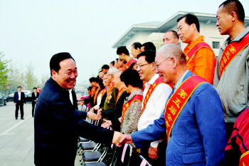 21日,市委书记王浩与第五届全市道德模范握手,并向他们表示祝贺。当日,淄博市召开全市文化名城、精神文明建设工作暨第五届全市道德模范表彰大会。20人(组)获评淄博道德模范。他们来自各行各业,既有基层百姓,也有企业老板,都有感人的故事和经历,都是市民学习的道德榜样。 本报记者 王鸿哲 摄影报道