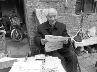 “村里人都很羡慕他,108岁的年纪了还那么健康,平时还能见到他在村里来来回回的走,精神还很好。”同住在团结街的孙先生介绍说,这样的一位吉祥老人住在村子里,大家都觉得这是个有福气的地方。在孙先生的指引下,记者走进了刘炳钤老人的家里。踏进木门,一条干净利落的斜坡甬道映入眼帘,画眉和鹦鹉惬意地在笼子里嬉闹,午后半酣,老人正倚靠在院里的躺椅上翻阅着当天的报纸。虽说是知道老人家有108岁的高龄,可是看到老人的一刹那,记者还是觉得老人并没有想象中百岁老人的模样。
