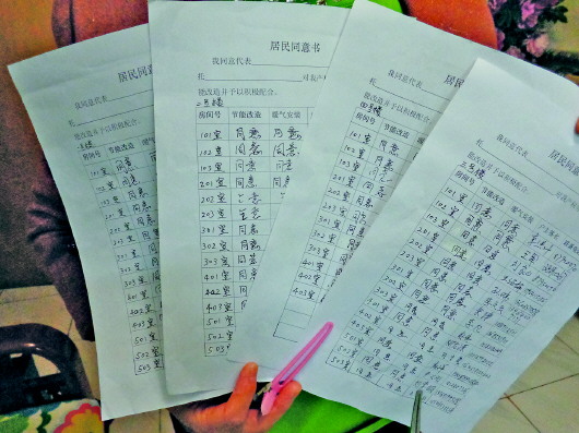 ▲顺祥街3号院居民同意供暖意向书。