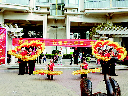 本报讯(记者 王倩 通讯员 孙华凤) 10月21日是重阳节,在建南社区,社区里的长寿老人聚在一起观看文艺表演,度过了重阳佳节。