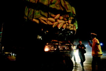 当日晚8点,任城区交警大队联合任城区公路局在北二环和105国道路口设置警力,对过往违法车辆集中查处。