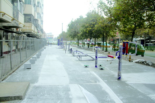 方案确定后,中和社区立即行动,积极向区体育局争取健身器材,多方自筹资金,在办事处和社区的不懈努力下,该休闲健身广场于10月19日开始施工建设。目前,占地400平米的广场已全部硬化完毕,安装了2套19件健身器材、休闲石凳6个,四周安装隔离桩,并在显要位置竖立健身宣传牌,彻底解决了居民的实际困难,为附近1000余户居民创造了一个休闲健身的好地方。该广场预计10月28日建成投入使用,居民就可以在此处健身了。