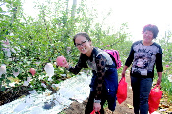 苹果喜获丰收,不少市民纷纷采摘品尝。
