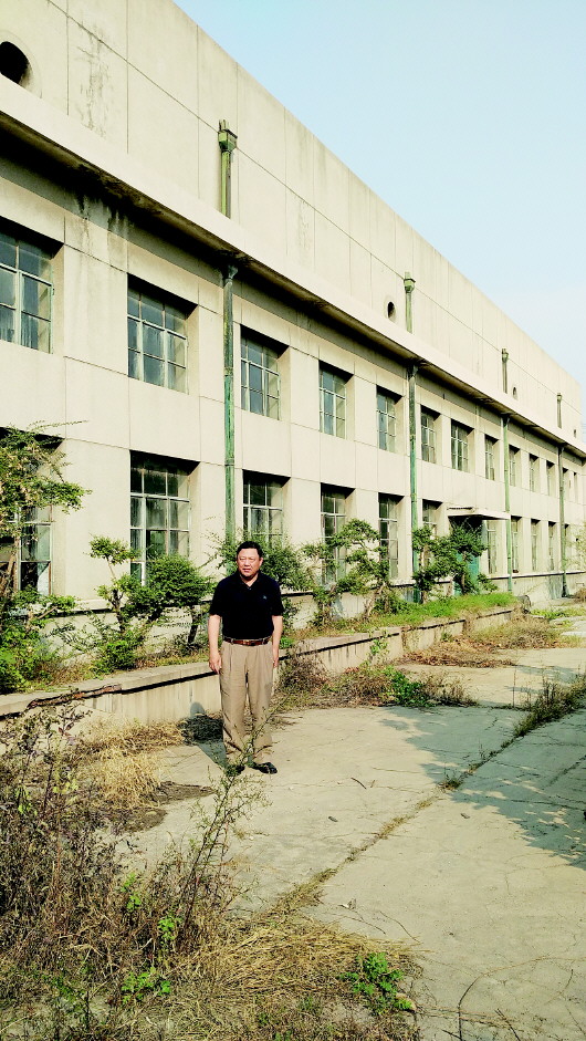 2015年10月14日,常起辉站在济南油墨厂内,厂房尽显沧桑。 本报记者 刘雅菲 摄