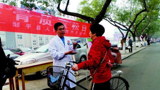 本报讯 10月20日是“世界骨质疏松日”,今年的主题是“为骨骼强度供养”,又恰逢九九重阳节来临之际,邹平县人民医院医护人员走上街头,为过往群众进行骨质疏松健康知识宣教与义诊。