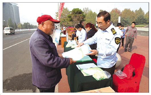 本报10月22日讯 (记者 于鹏飞) 为加强新《食品安全法》宣传,引导全市食品生产经营者守法经营、消费者依法维权,营造良好的舆论氛围,近日,莱芜市食安办、市普法办组织市食品药品监管局、市水利与渔业局、市农业局、市卫生计生委、市林业局、市畜牧兽医局等单位在市政府广场举行了新《食品安全法》集中宣传活动。
