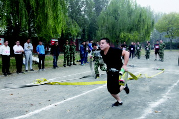 22日上午,来自重点消防单位的参赛选手在进行铺设水带比赛。当日,淄博市“关注消防 关爱生命”消防安全技能比武竞赛举行,来自全市的50名选手代表各自的企业参加了比赛。此次比武竞赛进一步提高了全市职工的消防安全意识和灭火逃生自救技能,以及企业的消防安全管理水平。                                    本报记者 王亚男 摄影报道