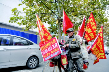 本报10月22日讯(记者 刘光斌) 10月份,经过6个多月,淄川罗村镇的王庆终于徒步自淄博至北京的500公里走了个来回,目的是沿途宣传抗日战争胜利70周年。
