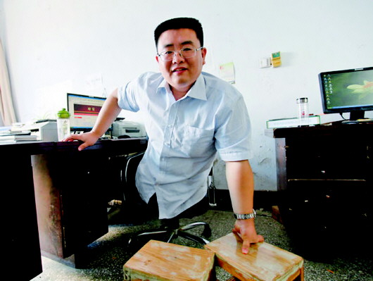 在宁津县残联工作期间,吴洪飞工作状态与旁人无异。图为2012年刚入职宁津县残联时的吴洪飞。(资料片)