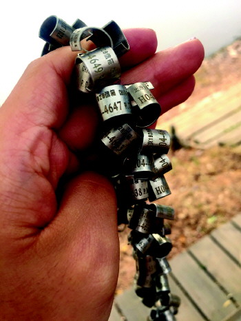 ◤通过编号可在系统中查到该鸟的身长、体重、迁徙路线等信息。 吕璐 摄