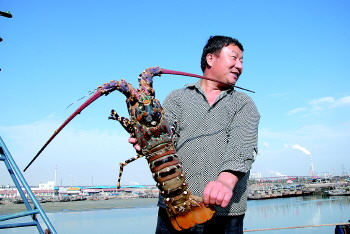 据捕捞到该龙虾的渔民刘先生说,他是在黄海中南部海域打捞上来的。“当时收网的时候是中午,我们拉上来一看,一堆鱼里边有这么个大家伙。”刘先生说。