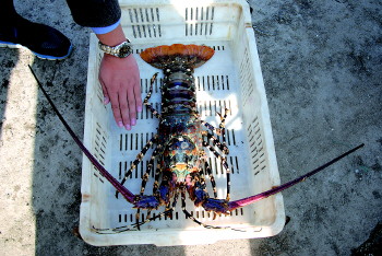 本报10月25日讯(见习记者 刘媛) 24日,日照岚山一渔民捕鱼归来,带回了一个罕见的“大家伙”,一只5.5斤重,身长约60厘米的大龙虾。据当地老渔民介绍,这是罕见的中华锦绣大龙虾。