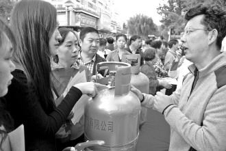 25日上午,鲸园街道办事处工作人员联系质监、燃气办和消防等部门开展安全用气宣传,现场讲解老旧液化钢瓶的危险,市民可携废旧钢瓶到燃气站抵价换购新液化钢瓶。