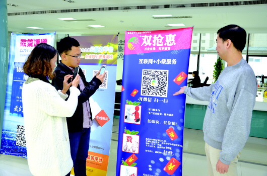 青岛中小企业服务中心推出的互联网+小微服务“双抢惠”吸引了许多企业扫描二维码参加。