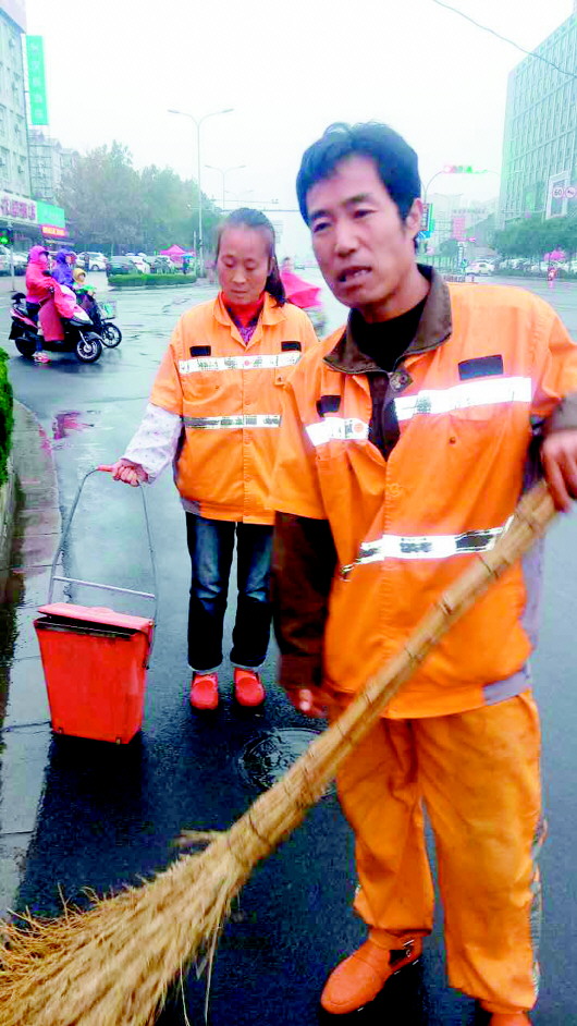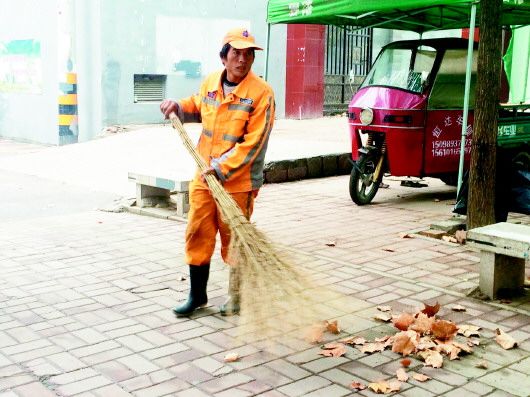 保洁员一天到晚都要坚持在马路上,夫妻档搭伙负责同一路段保洁的现象,是比较常见的。曾负责纬二路保洁的马洪亮,妻子比他晚来一年,就在同一路段“互相之间也好有个照应,两人倒换着上午也能稍微休息会儿。”他们负责500米的路段,除了早晚的清扫外还要不停地走着捡拾,一天下来差不多要走上50趟,算起来至少要20公里。